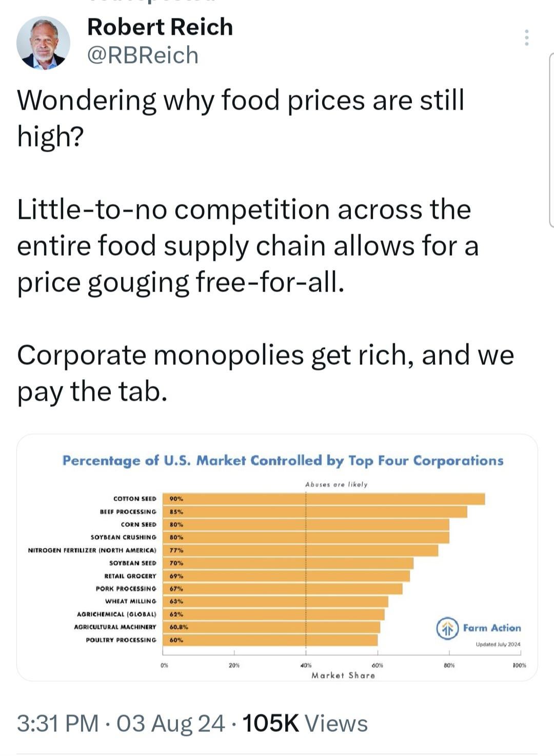 Oligopolies and monopolies aren’t talked about enough. Imagine if we broke up big corporations in every industry and created competition.