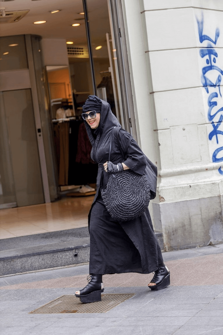 Odlično, žena fura svoj stil i dobro joj ide, za razliku od onih s PHILIPPE PLEIN majicama i sl.