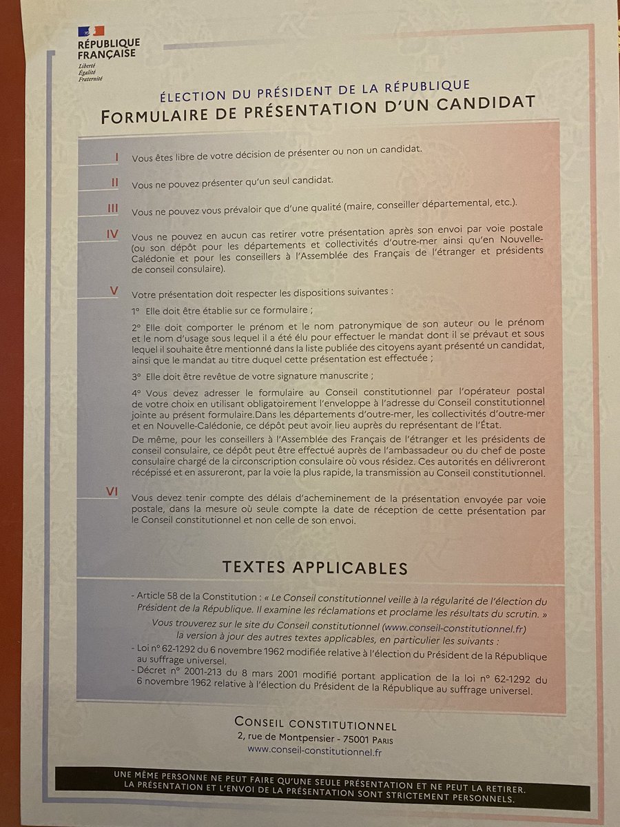 Moyennement intéressant : voici à quoi ressemble le Formulaire de présentation d’un candidat à l’élection du Président de la République