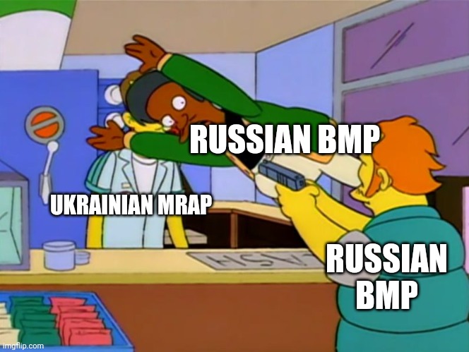 Funny enough, the “other” neutral sub has the same exact post. but claims the exact opposite: that the BMP2 is a ukrainian, and that it shoots a ukrainian MRAP.