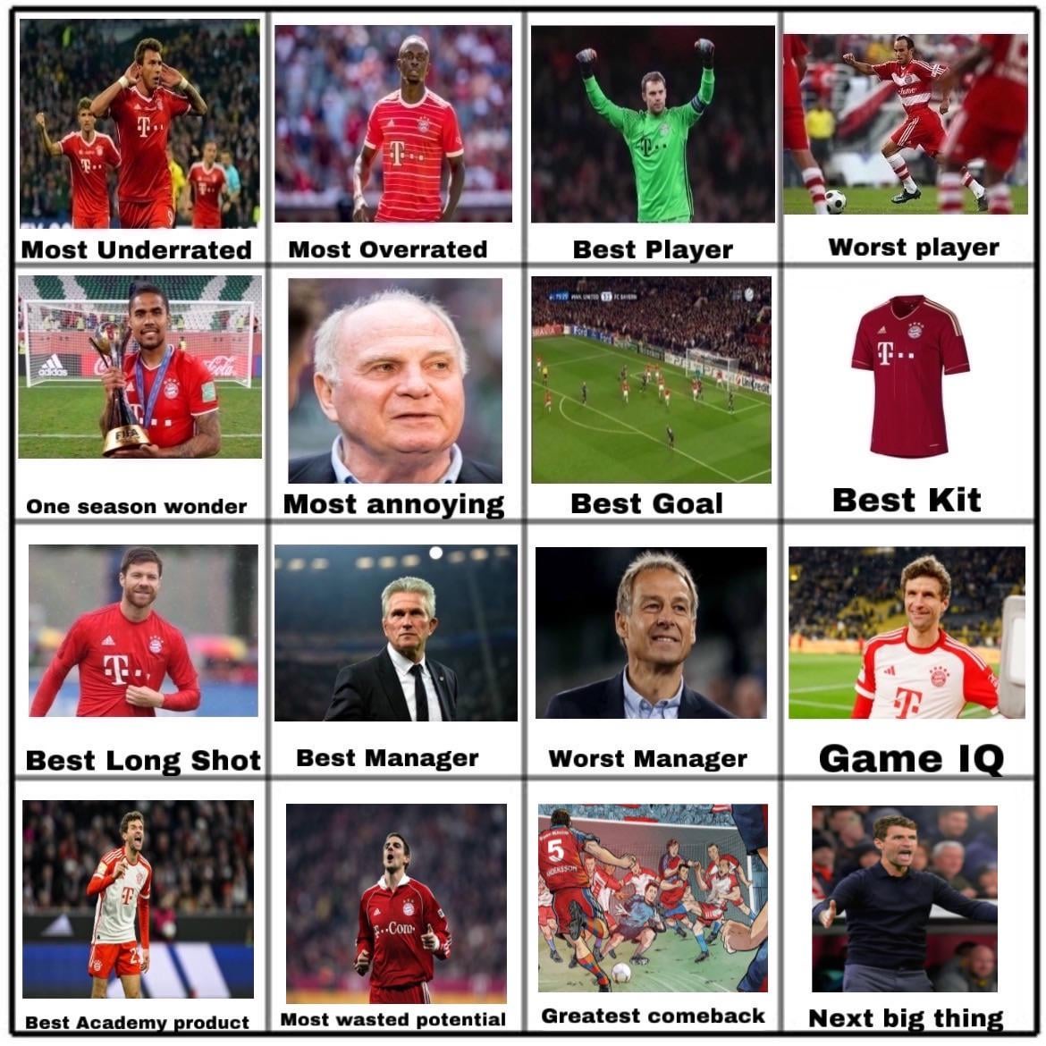 With Thomas Muller as a manager being voted as the next biggest thing for Bayern, the grid is completed. Thank you to everyone for participating.