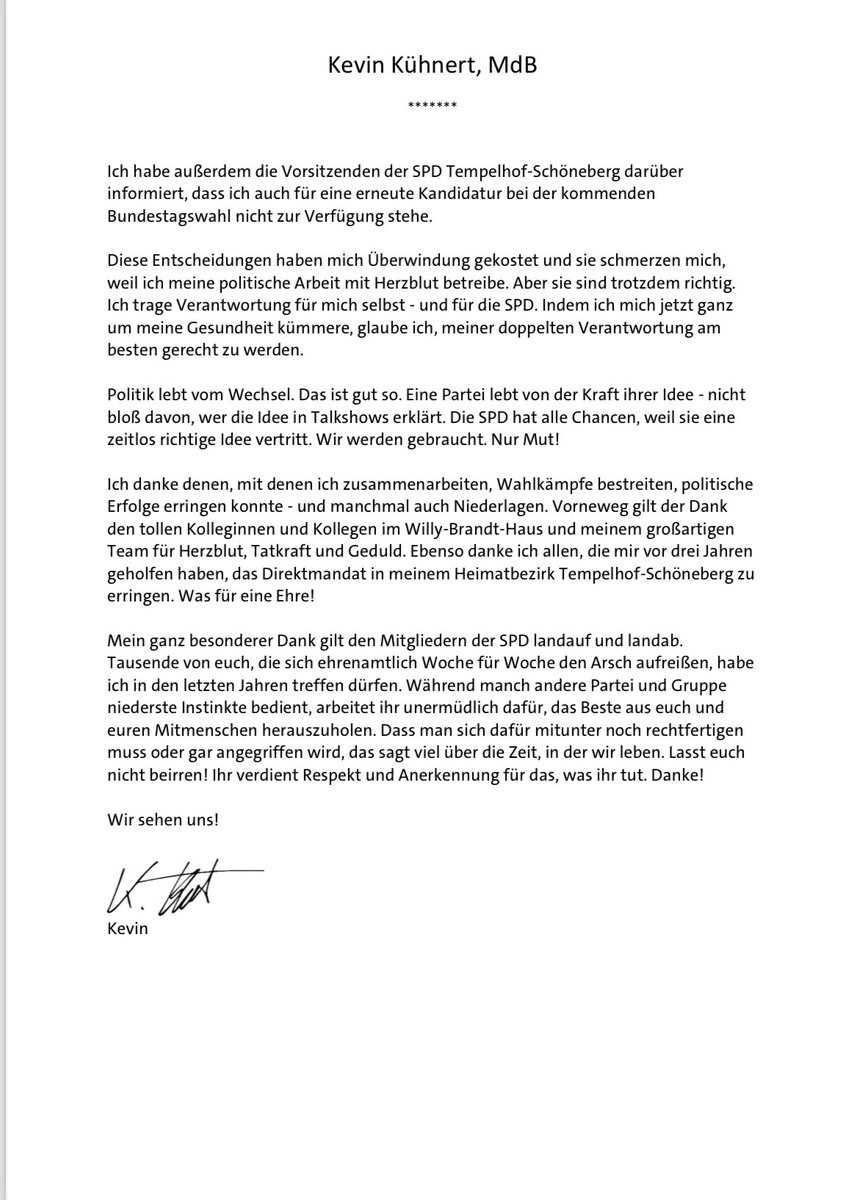 Kühnert wirkte doch immer sehr souverän und als ob er weiss was er tut und sagt. Der Rückzug aus dem Bundestag ist bemerkenswert ich wünsche ihm alles Gute was auch immer der Grund dafür ist. Jedenfalls schade für die SPD.