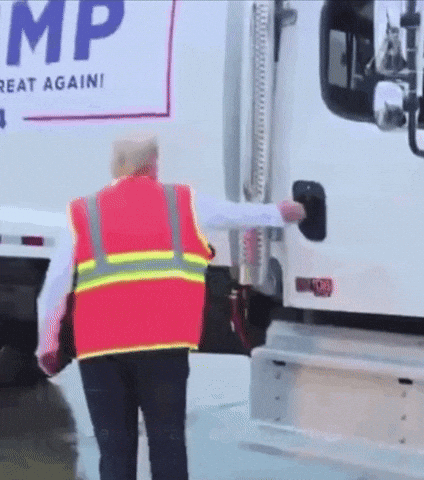[Trump trips into a garbage truck](https://media0.giphy.com/media/Lv1QIRzTbmsvpJ5wUR/giphy.gif?cid=9b38fe9121rmsl43acmicy0tpf87dkclfg9vs0fgm7u440ra&ep=v1_gifs_username&rid=giphy.gif&ct=g)