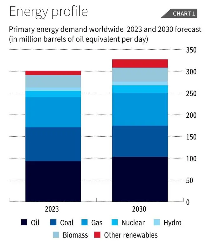 In 2023, natural gas accounted for 22.9 per cent of primary energy demand (Figure 1) and its share is projected to rise to 23.2 per cent in 2030. So it remains an important source of energy globally, after oil (which remains the largest) and then coal (whose share is projected to decline).