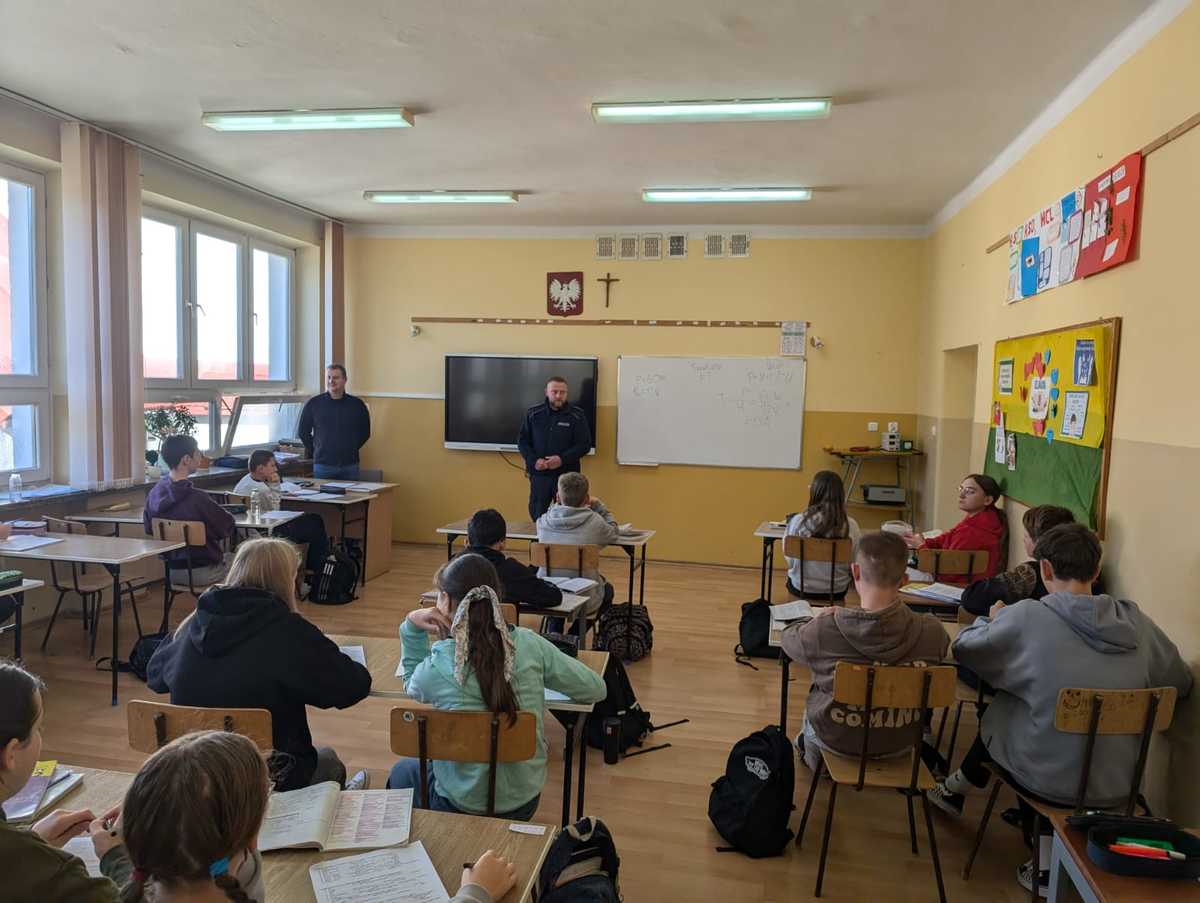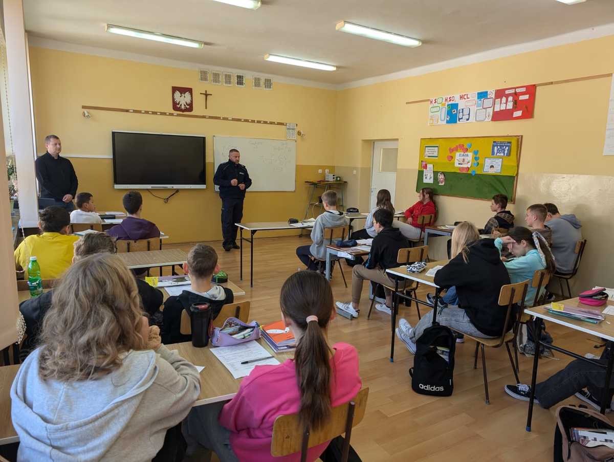W minionym tygodniu w Szkole Podstawowej w Młyńczyskach odbyło się spotkanie uczniów z aspirantem sztabowym Michałem Wajdą, dzielnicowym Posterunku Policji w Łukowicy. Tematem spotkania było przede wszystkim szeroko pojęte bezpieczeństwo.