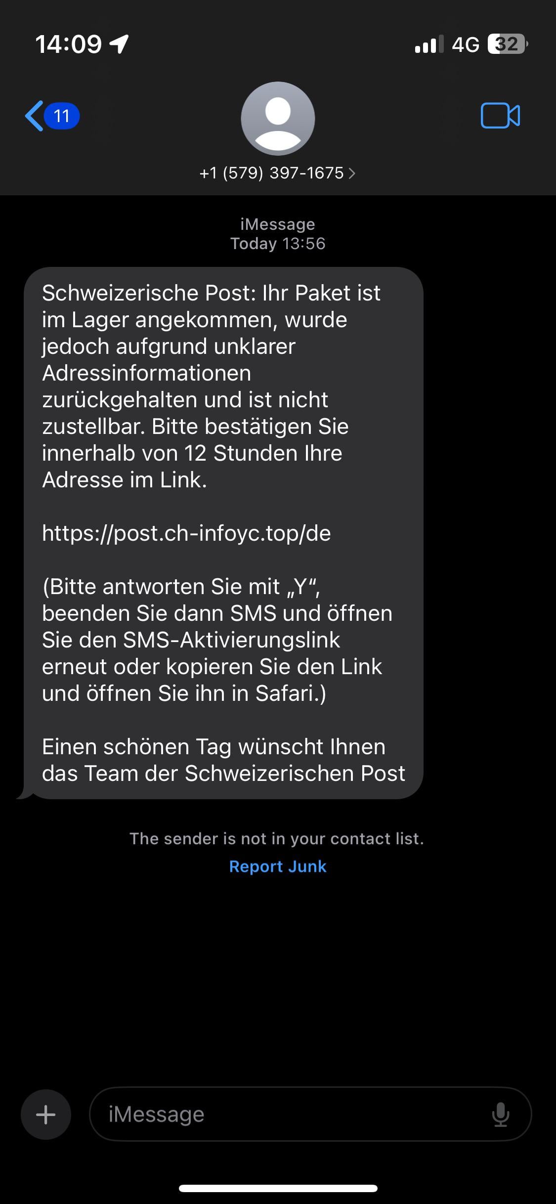 * the link does not go to [post.ch](http://post.ch) (while there is a [post.ch](http://post.ch) in there, the domain is actually ch-infoyc.top)