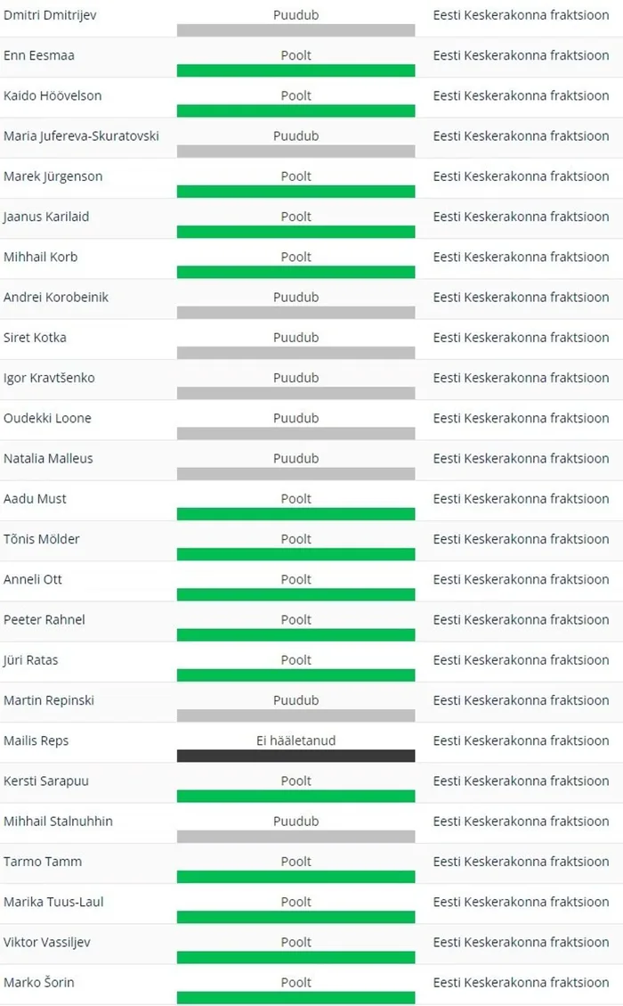 Lisaks on 10 keskerakondlast, kes ei hääletanud Vene agressiooni hukkamõistmise poolt: [https://img-9gag-fun.9cache.com/photo/aYrV1PO_700bwp.webp](https://img-9gag-fun.9cache.com/photo/aYrV1PO_700bwp.webp)