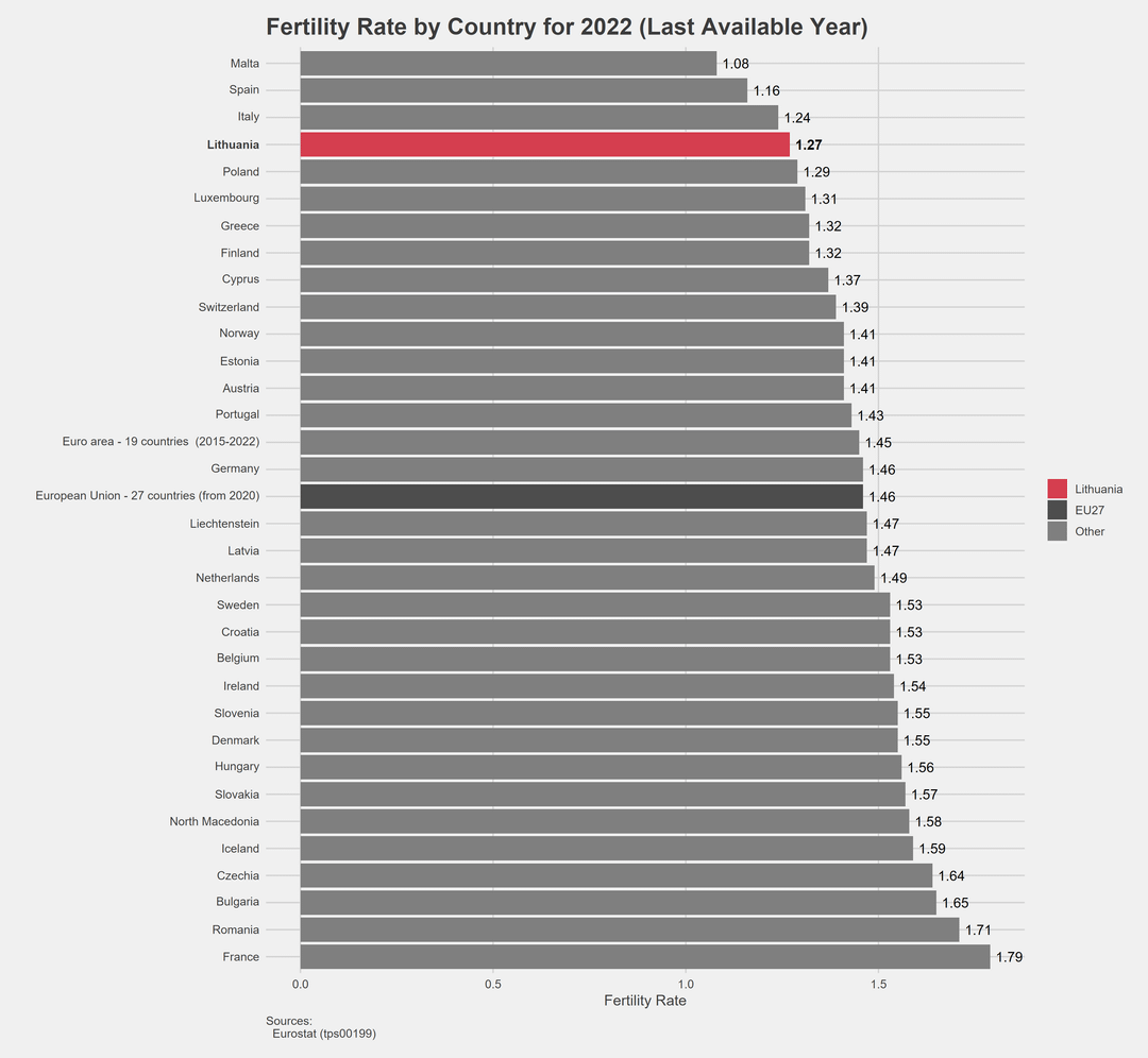 If anyone studies the subject professionally, would love to hear your insights, what could be some other reasons why the fertility rate could be declining in Lithuania faster than pretty much in any other Country?
