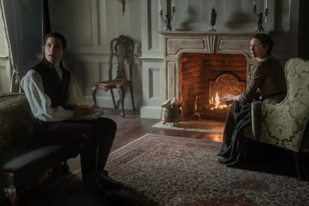 Outlander_710_Brotherly Love_Left to Right: Caitríona Balfe (“Claire Fraser”) and Harry Jarvis (“Henry Grey”)