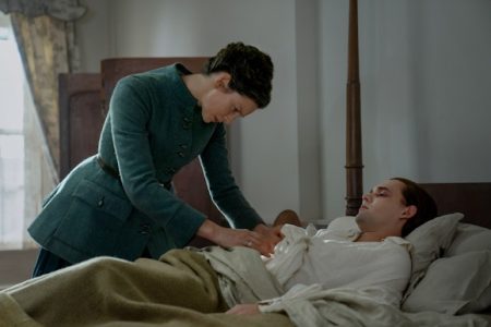 Outlander_709_Unfinished Business_Left to Right: Caitríona Balfe (“Claire Fraser”) and Sam Heughan (“Jamie Fraser”)