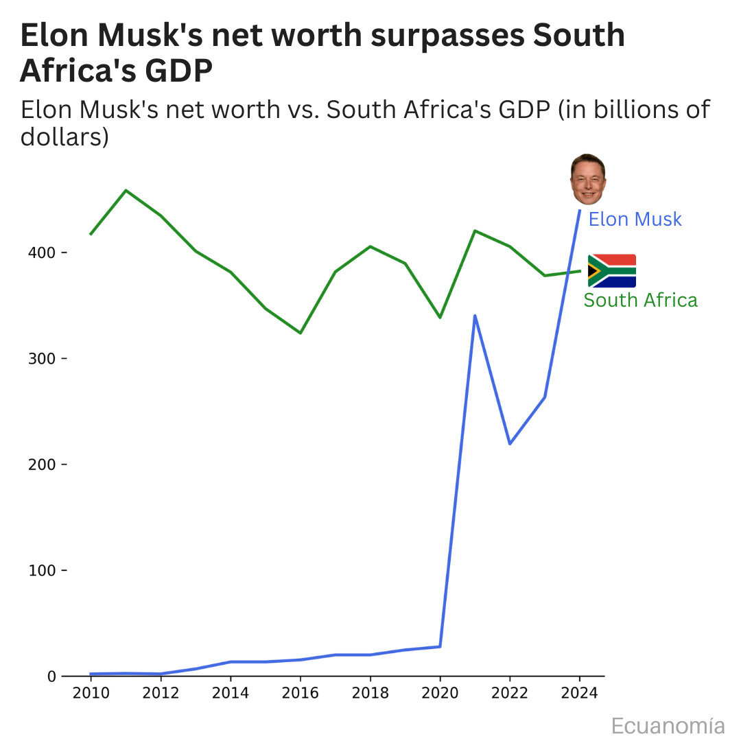 Tools: Python and Canva. Sources: World bank indicators and Bloomberg: https://www.inc.com/phil-rosen/elon-musk-billionaire-tesla-trump-stock-market-election-wealth-business/91064912#:~:text=Bloomberg's%20Billionaires%20Index%20now%20estimates,shareholder%20value%20cannot%20be%20disputed.