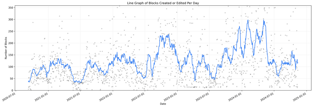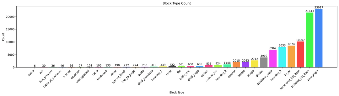 Notion Wrapped! A Python library that traverses your ENTIRE Notion to make a variety of visualizations including network graphs! Word clouds! Block type plots! Usage plots! And more!