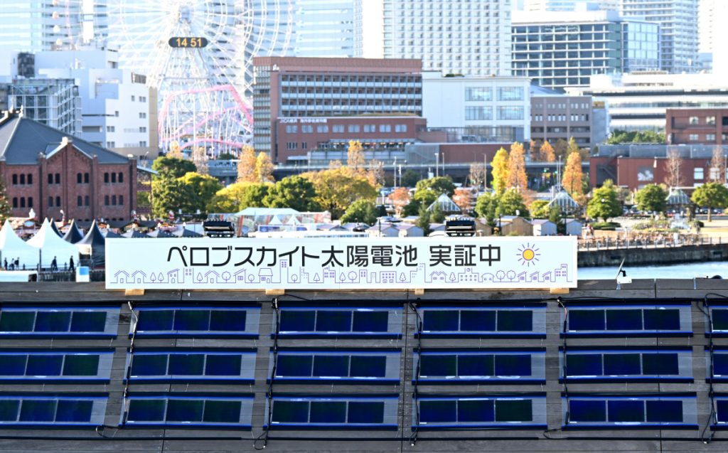 Perovskite solar cells undergoing demonstration experiments at Ōsanbashi Pier, Yokohama Port, November 27 (©JAPAN Forward by Hidemitsu Kaito).