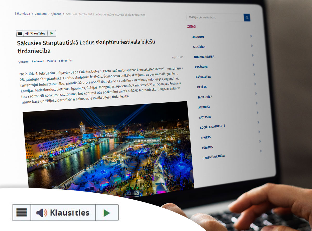 Turpinot uzlabot vietnes Jelgava.lv funkcionalitāti, šogad tās saturs kļuvis vēl pieejamāks jelgavniekiem. Tīmekļvietnē ir nodrošināts tekstu lasītājs, ko var ērti izmantot, ja rakstīto informāciju vēlas noklausīties.
