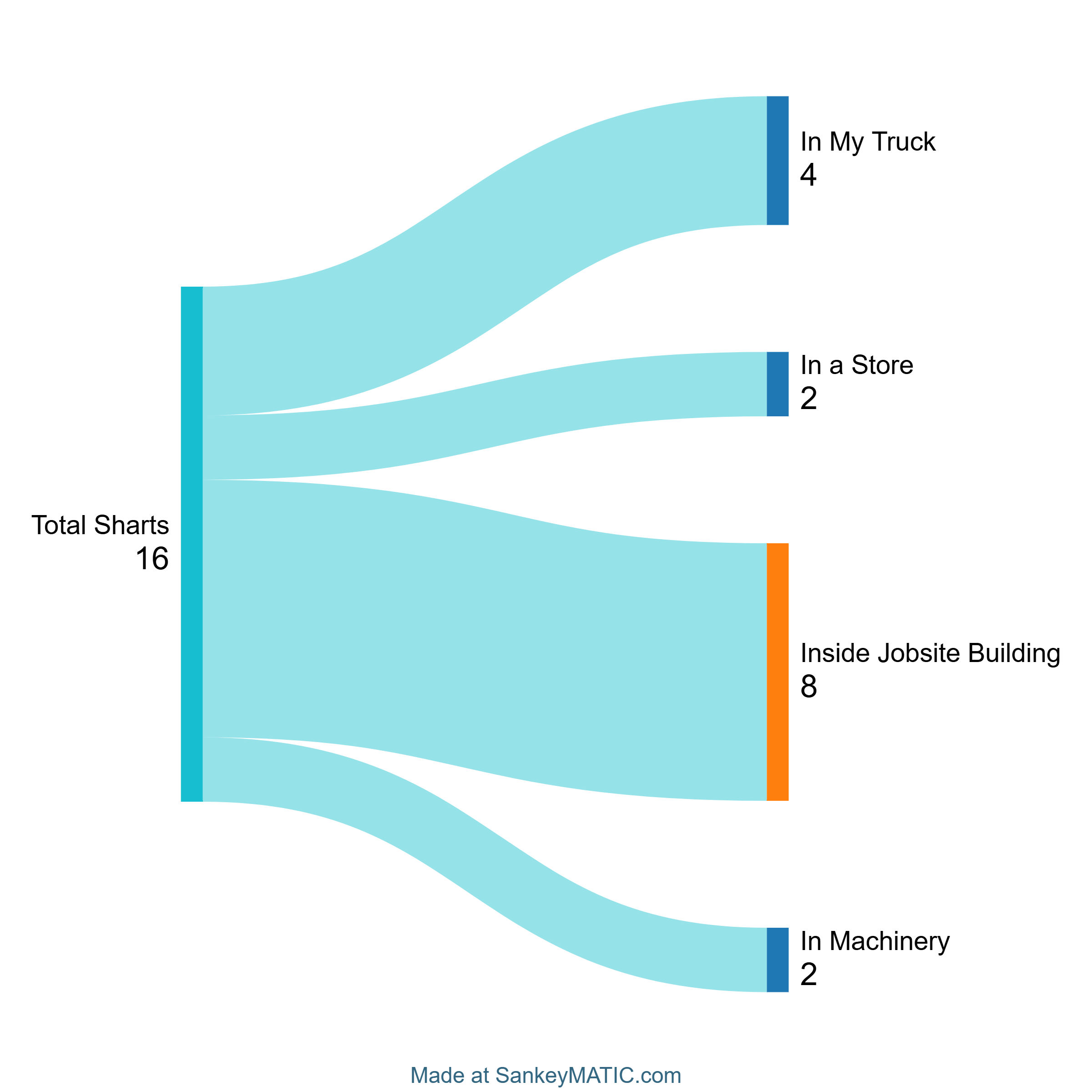 [OC] Incidents of sharting over the past 10 months as a construction worker (Stankey Visualization)