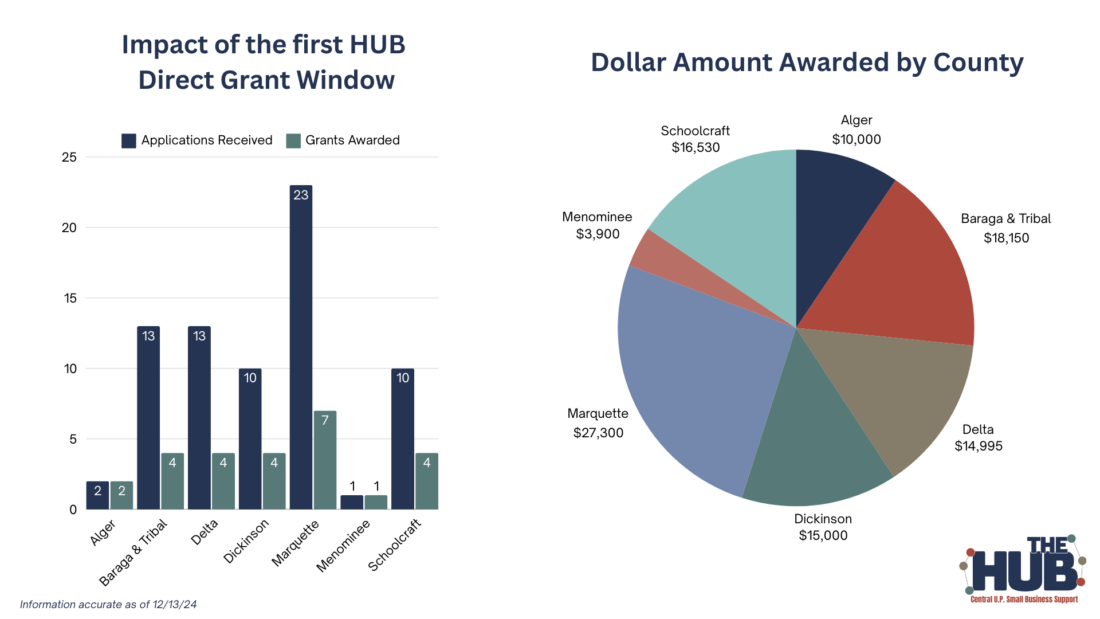 MARQUETTE — The Central Upper Peninsula Small Business Support Hub, known as the Hub, has awarded $105,875 to small businesses across the Upper Peninsula, marking the successful completion of its first direct grant cycle and laying the groundwork for the remaining three cycles to support local entrepreneurs.