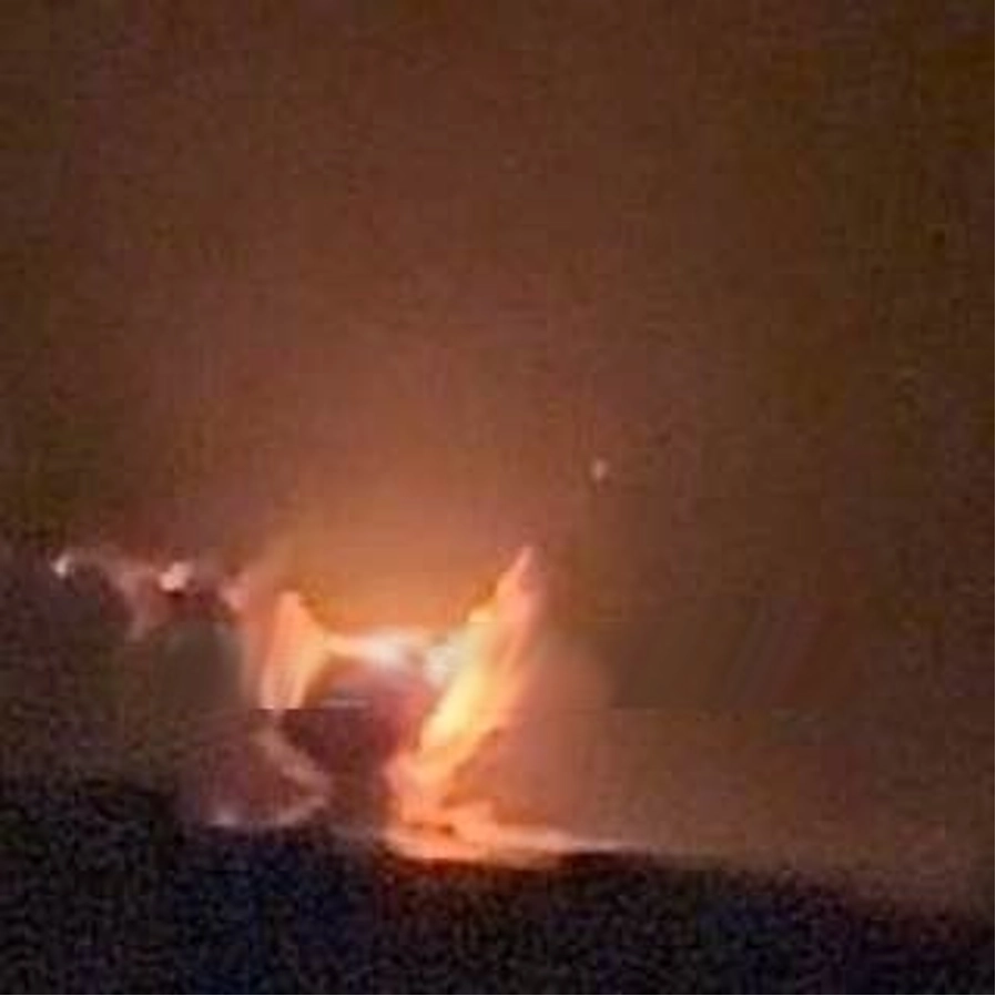 Unconfirmed image of a Ukrainian sea drone detonating in the proximity of Russian naval facilities in the military port Sevastopol, in the occupied Crimea peninsula.