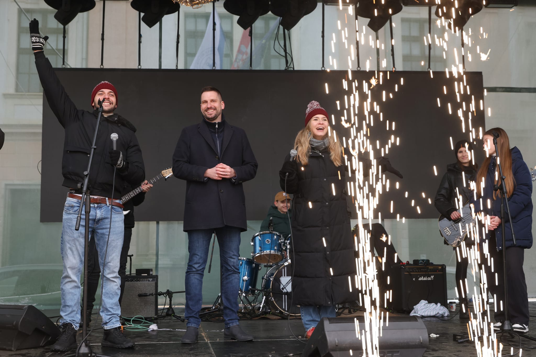 Zagreb’s Mayor, Tomislav Tomašević, led a symbolic countdown to noon, sharing wishes for peace, health, love, and joy in the coming year.