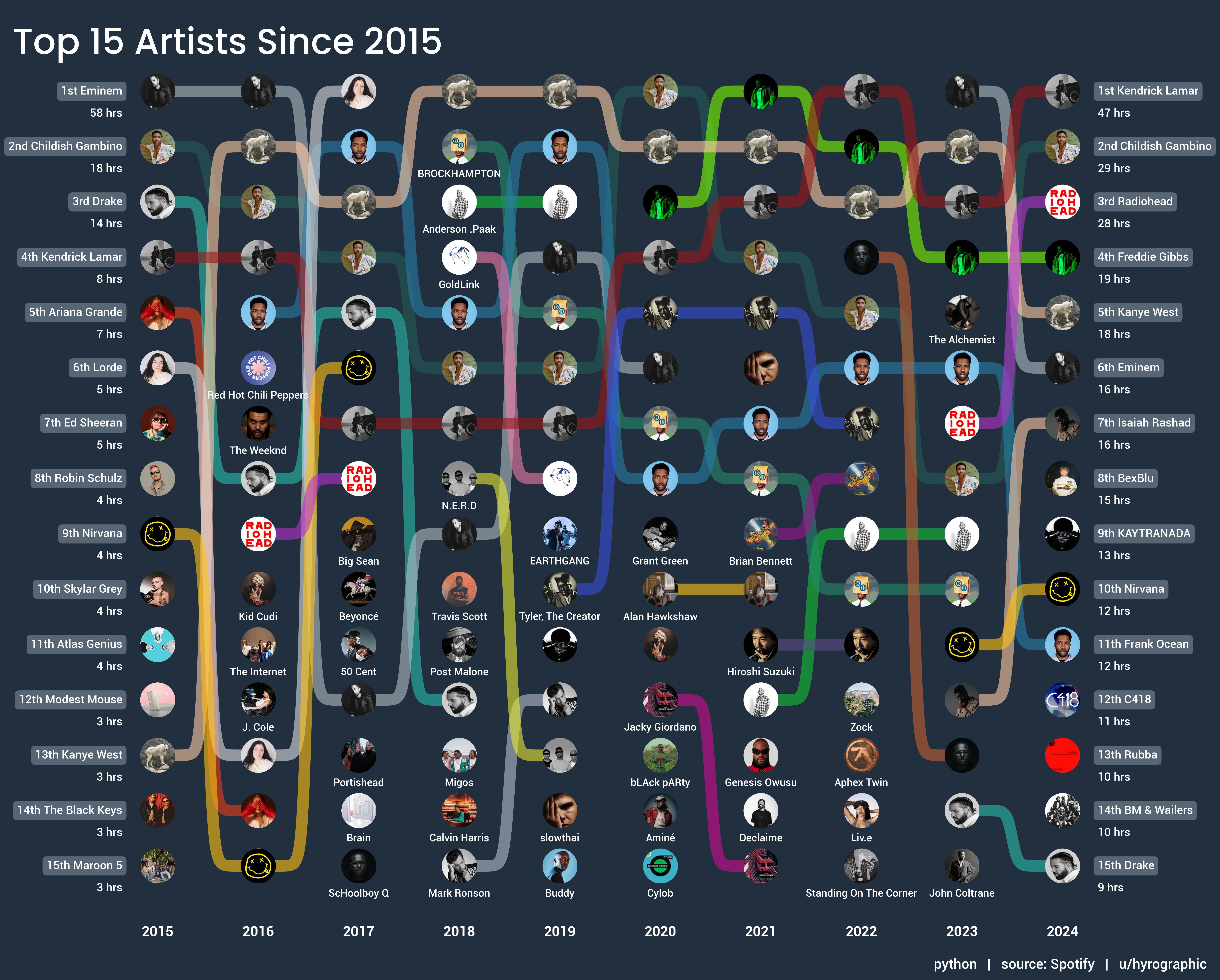 A decade of my top Spotify artists [OC]