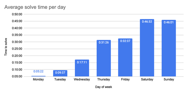 I solved every NYT crossword in 2024 with my friends Posted by Crafty_Clasher Tags:DataData Is BeautifulDataIsBeautiful 4 comments Mother doesn’t want to get muddled while watching a film (4) (Hopefully this is solvable, it makes sense having come up with it but that’s not to say it works standalone!) Each week day gets a specific difficulty ? What led you to think a stacked bar chart was the best method to depict these data on this thread? What were you trying to show? [deleted] Comments are closed.