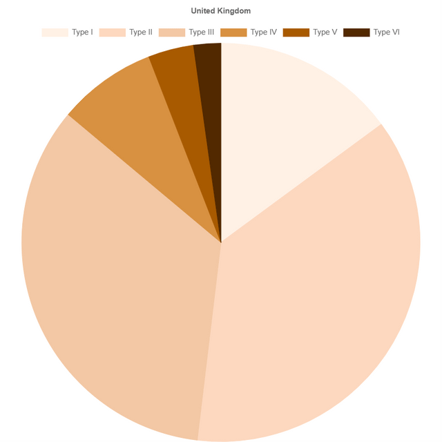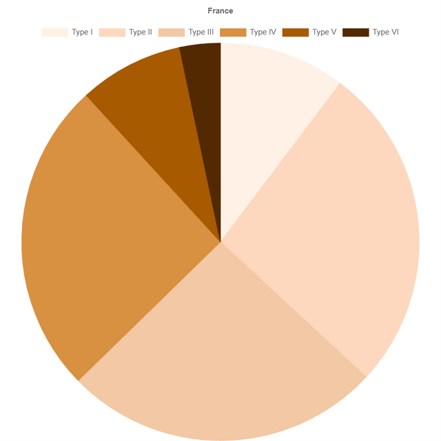 Skin Color Distribution Among European Countries/Regions [OC] (Source: Bataille et al 2005, National Library of Medicine, Perplexity [accuracy rate of 99.98%] )