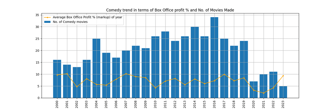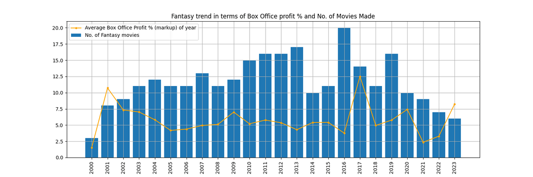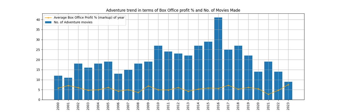 [OC] Genre-wise Trend of No.of Movies made vs. Profit % of the movies over the years