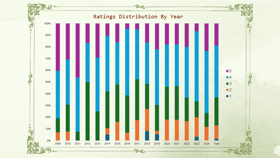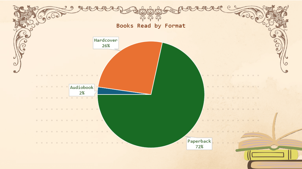 I’d be interested in seeing the genre breakdown. I’m assuming you don’t read a lot of fantasy? (All my 10+ book authors are fantasy).
