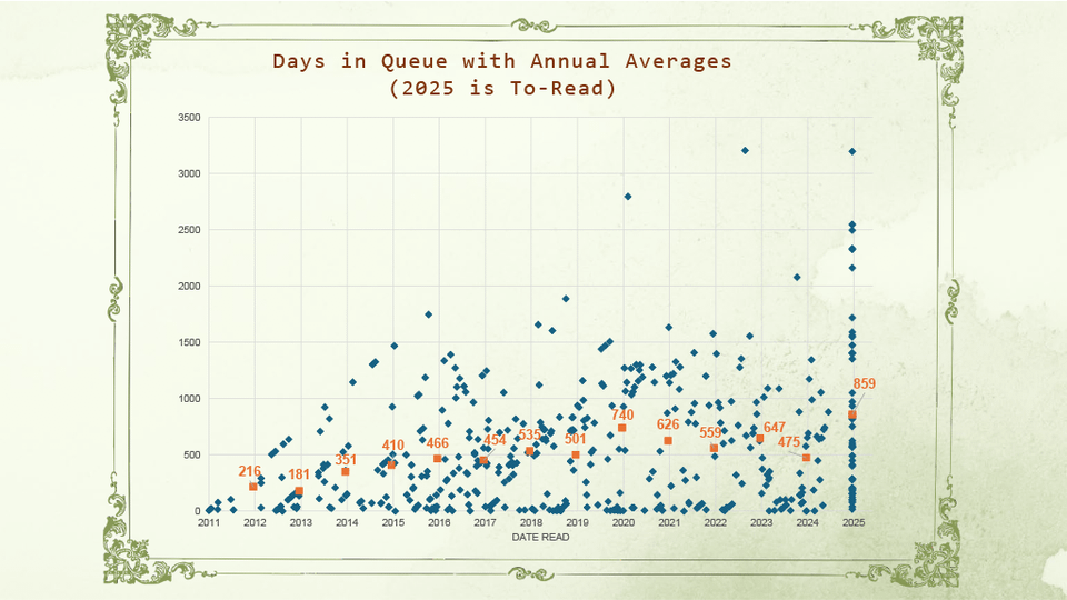 In your queue chart, does each dot represent only books you’ve read? And do you have any data on your most read genres?