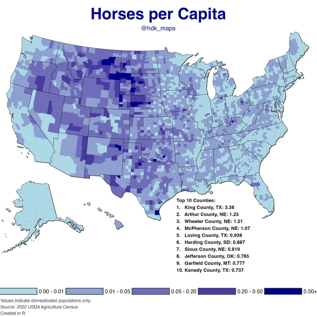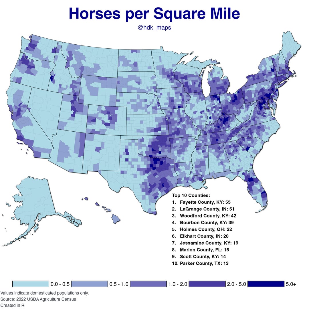 [OC] The Distribution of Horses in the US