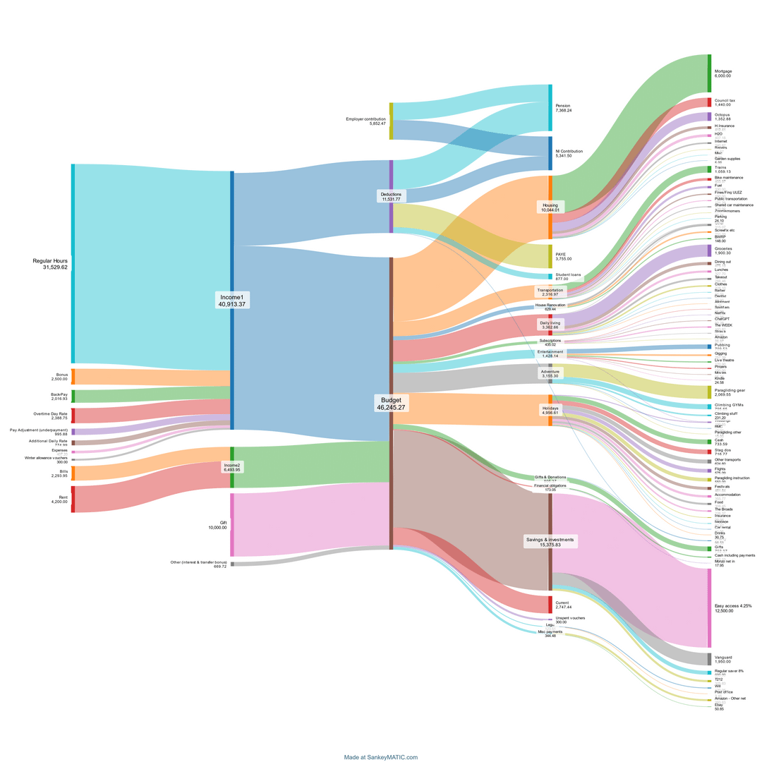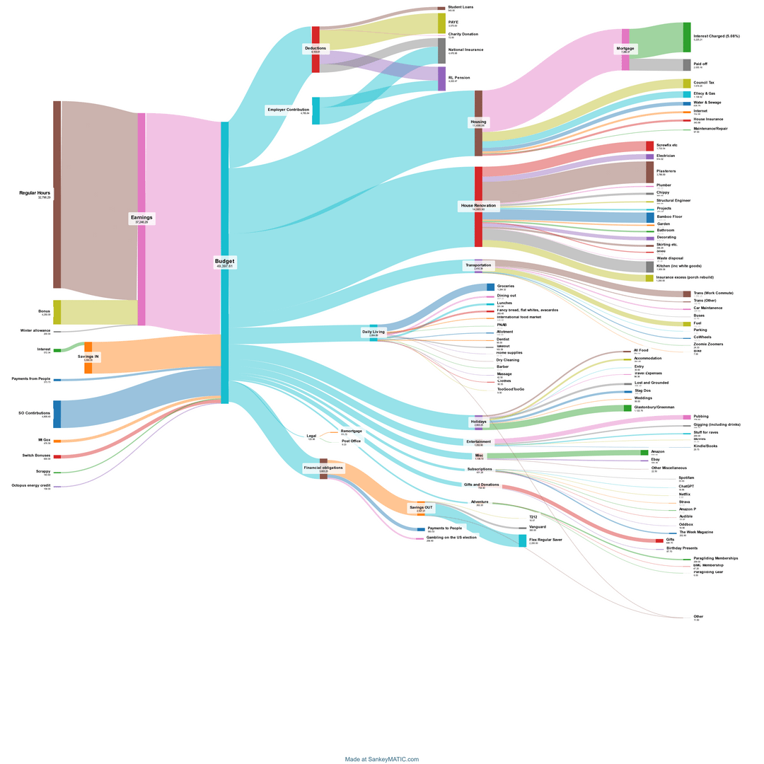 My entire life in income and expenses for the last 3 years. Massive decrease in fun, massive increase in house renovation. I have shed loads of data suggestions of what to do with it?