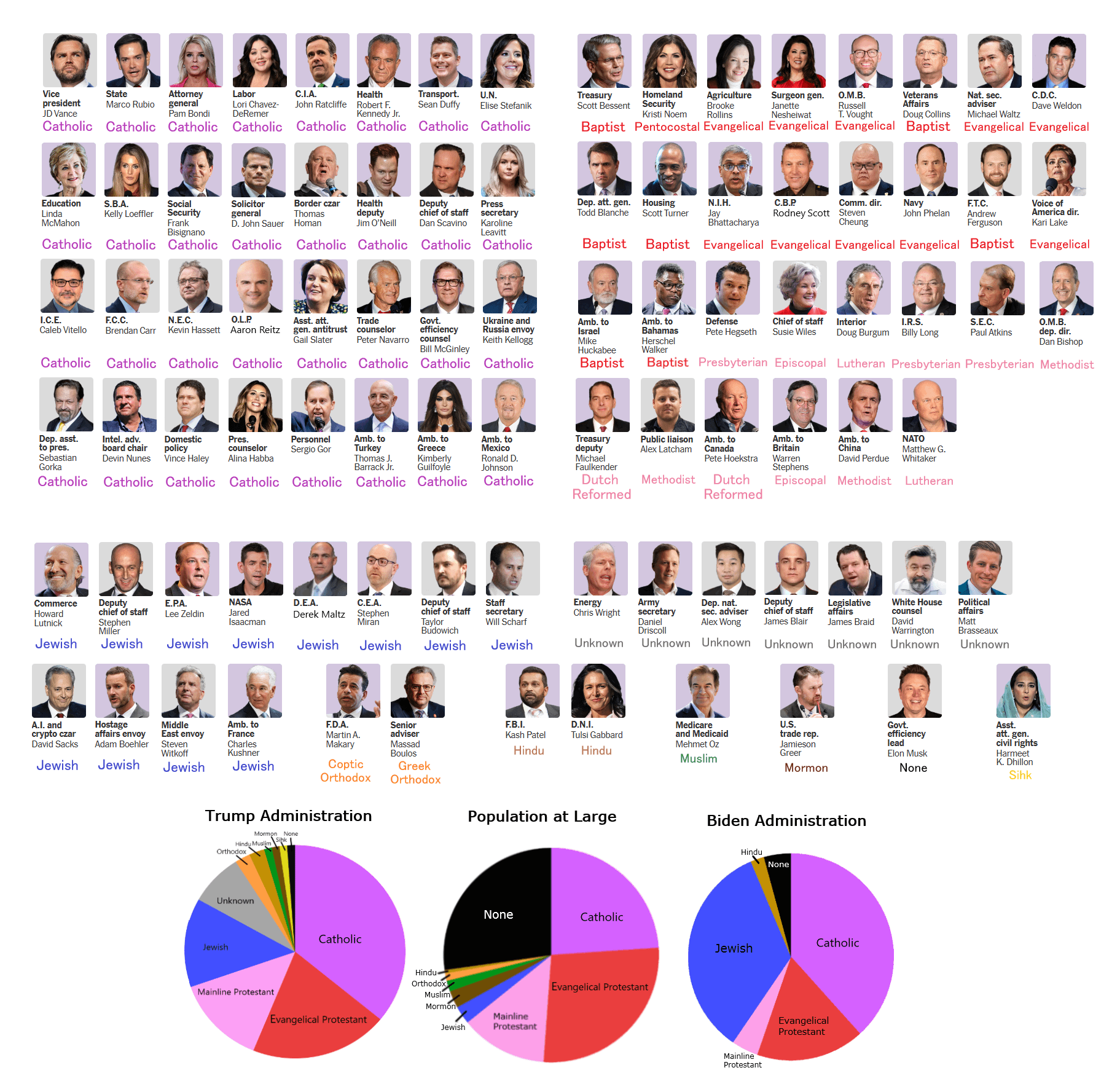 [OC] Trump admin picks by religious affiliation (with added pie charts)