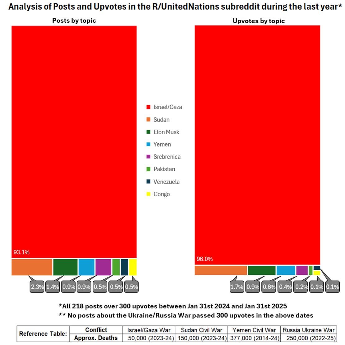 [OC] Posts and Upvotes in the R/United Nations subreddit analysed by topic