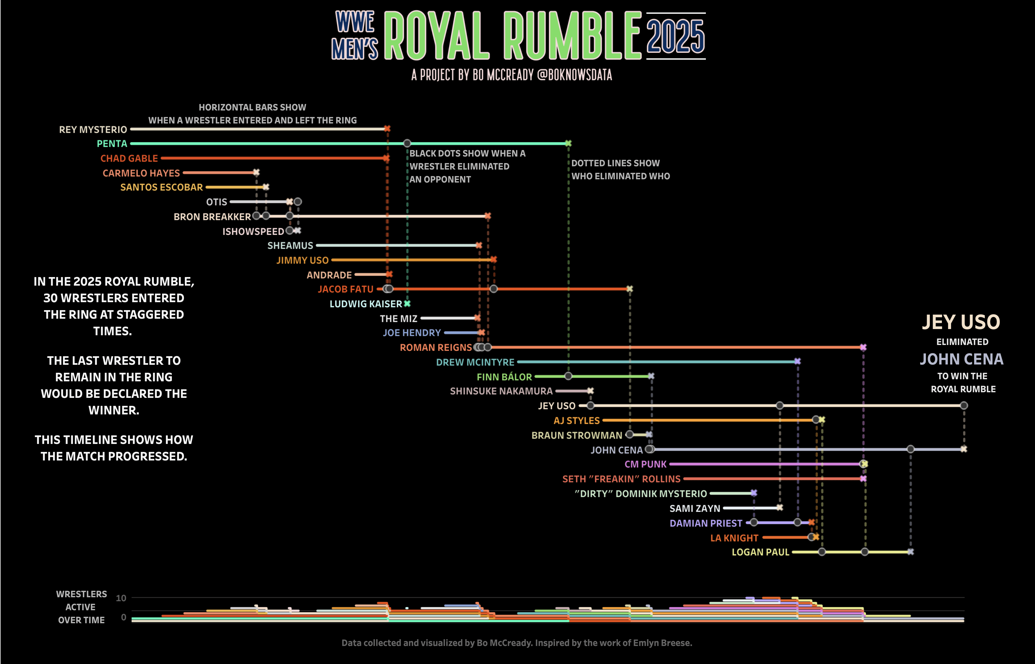 Visualizing the 2025 WWE Men’s Royal Rumble [OC]