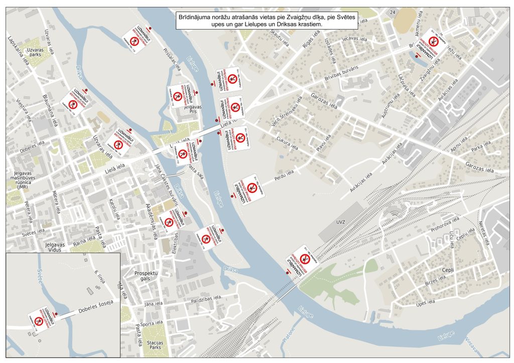 Saskaņā ar pašvaldības rīkojumu “Par aizliegumu atrasties uz ledus” atrasties uz Jelgavā esošo ūdenstilpju ledus ir aizliegts. Pašvaldības iestāde “Pilsētsaimniecība” vairākās vietās pilsētā pie ūdenstilpēm izvietojusi informatīvas brīdinājuma zīmes, atgādinot, ka atrasties uz ledus ir bīstami.