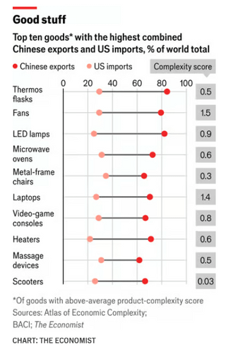 Permanent link here: [https://www.economist.com/graphic-detail/2025/02/12/which-goods-are-most-vulnerable-to-american-tariffs-on-china](https://www.economist.com/graphic-detail/2025/02/12/which-goods-are-most-vulnerable-to-american-tariffs-on-china)