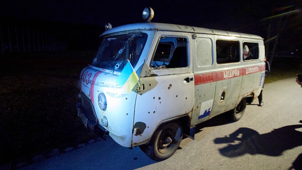 Vom Verein „Fellas for Europe“ hatte Respekt@Poingr einen ukrainischen Krankenwagen ausgeliehen, der aufgrund seiner Beschädigungen außer Dienst gestellt werden musste. Er dient einerseits als Anschauungsmaterial für die bescheidenen Mittel vor Ort und soll gleichzeitig Spenden für neue Krankenwagen und weiteres medizinisches Material sammeln.