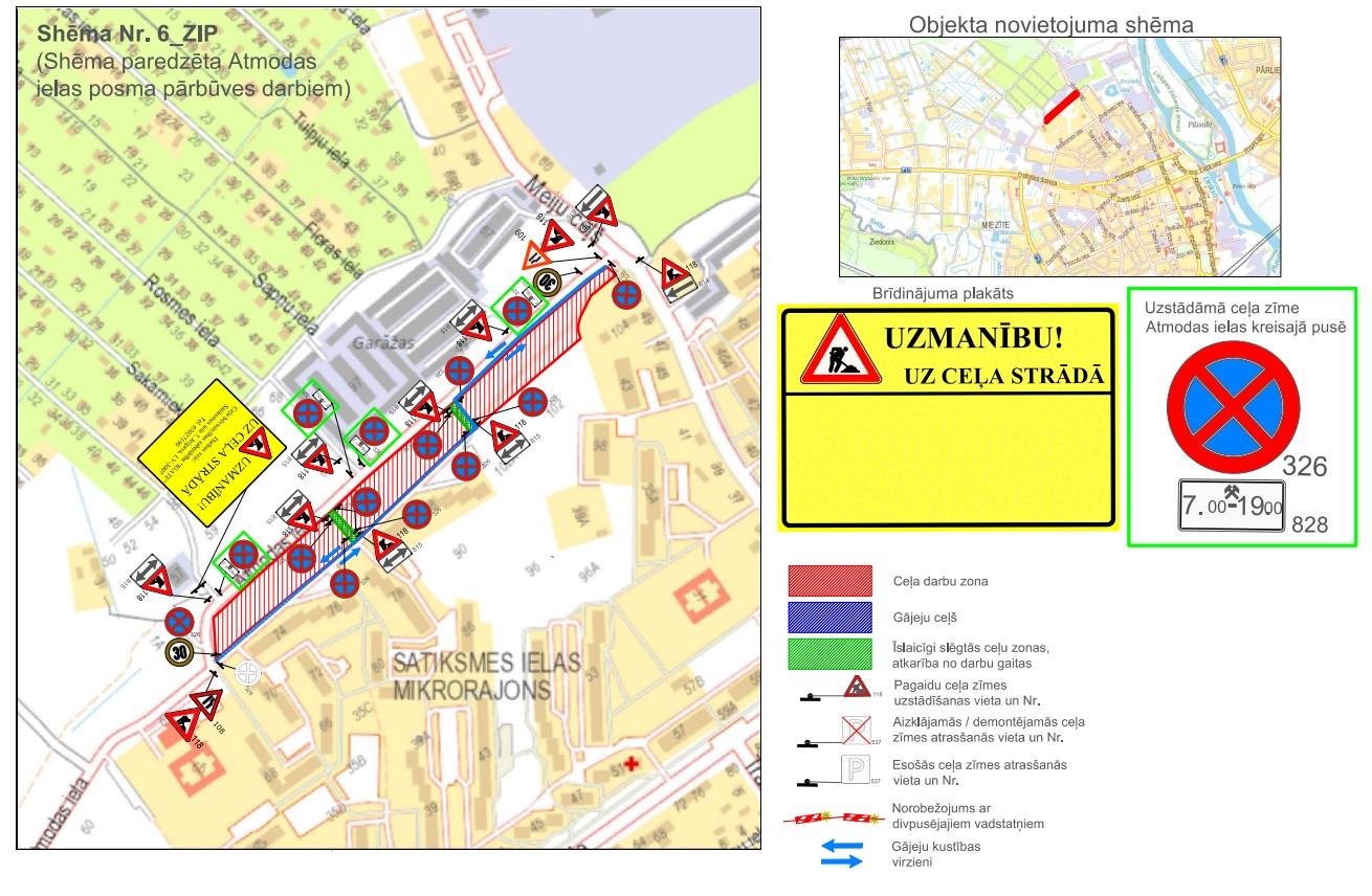 Iedzīvotājiem, kas dzīvo vai pārvietojas ar autotransportu šajā teritorijā, lūgums ņemt vērā aktuālās satiksmes organizācijas izmaiņas, sekojot līdzi izvietotajām ceļa zīmēm.