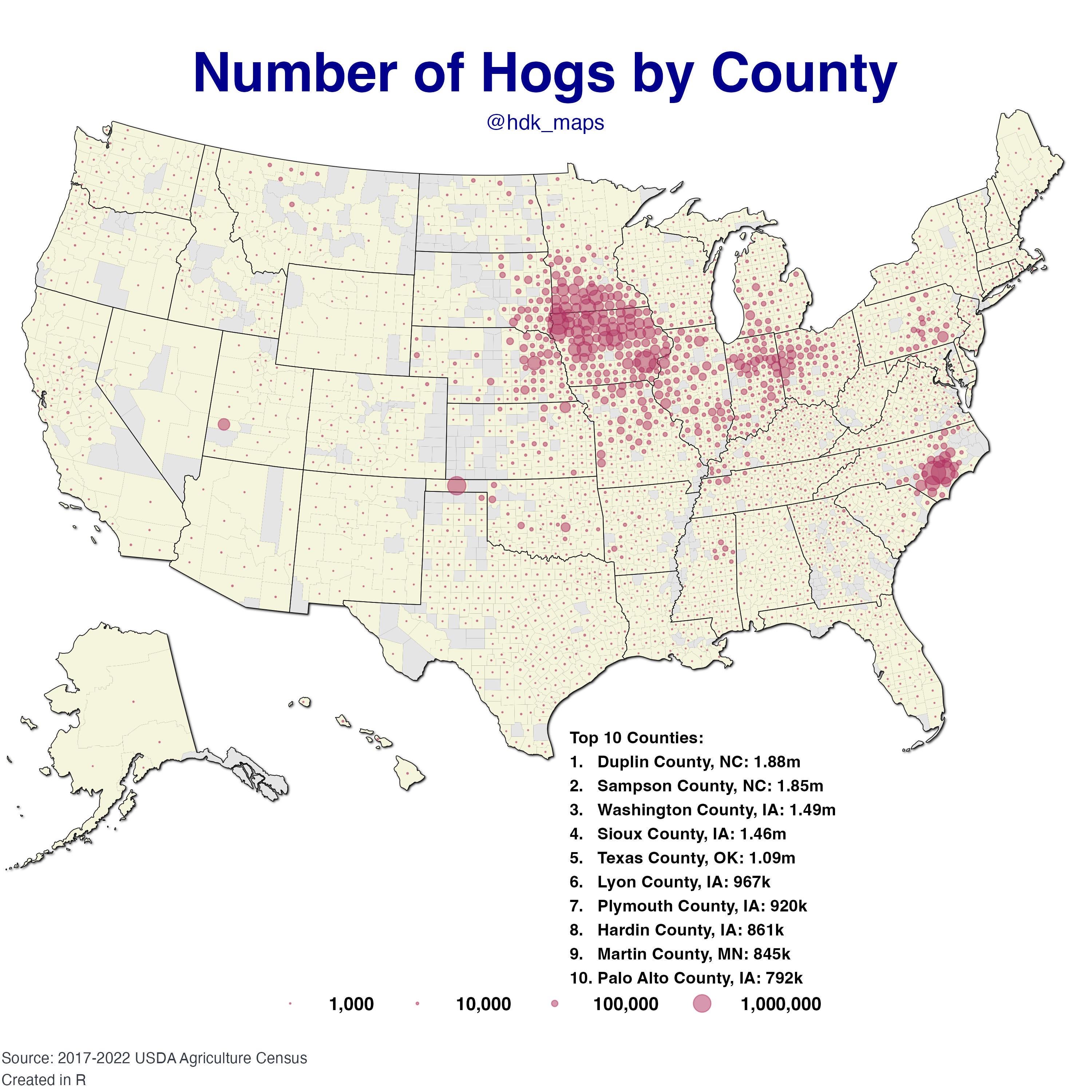 The big spot in NC developed because the big hog operators didn’t find effective opposition from the local citizens, who are predominately poor and Black. The situation is one of the prominent [environmental racism stories ](https://www.southernenvironment.org/news/the-sinister-hog-industry-of-eastern-north-carolina/)in the US.