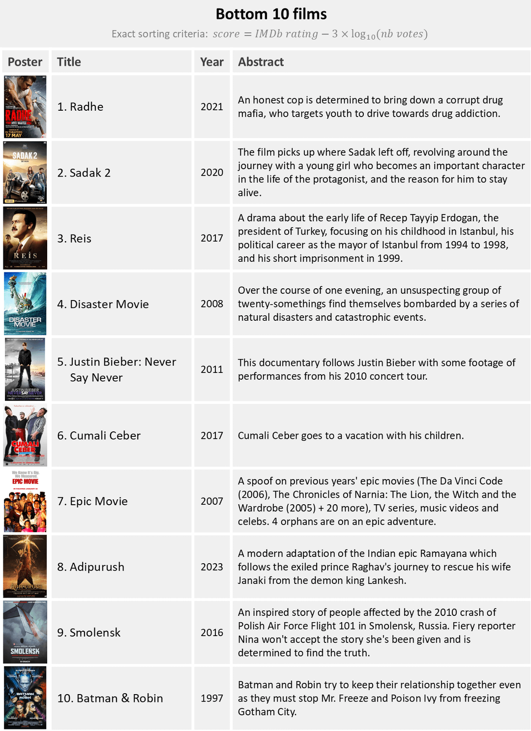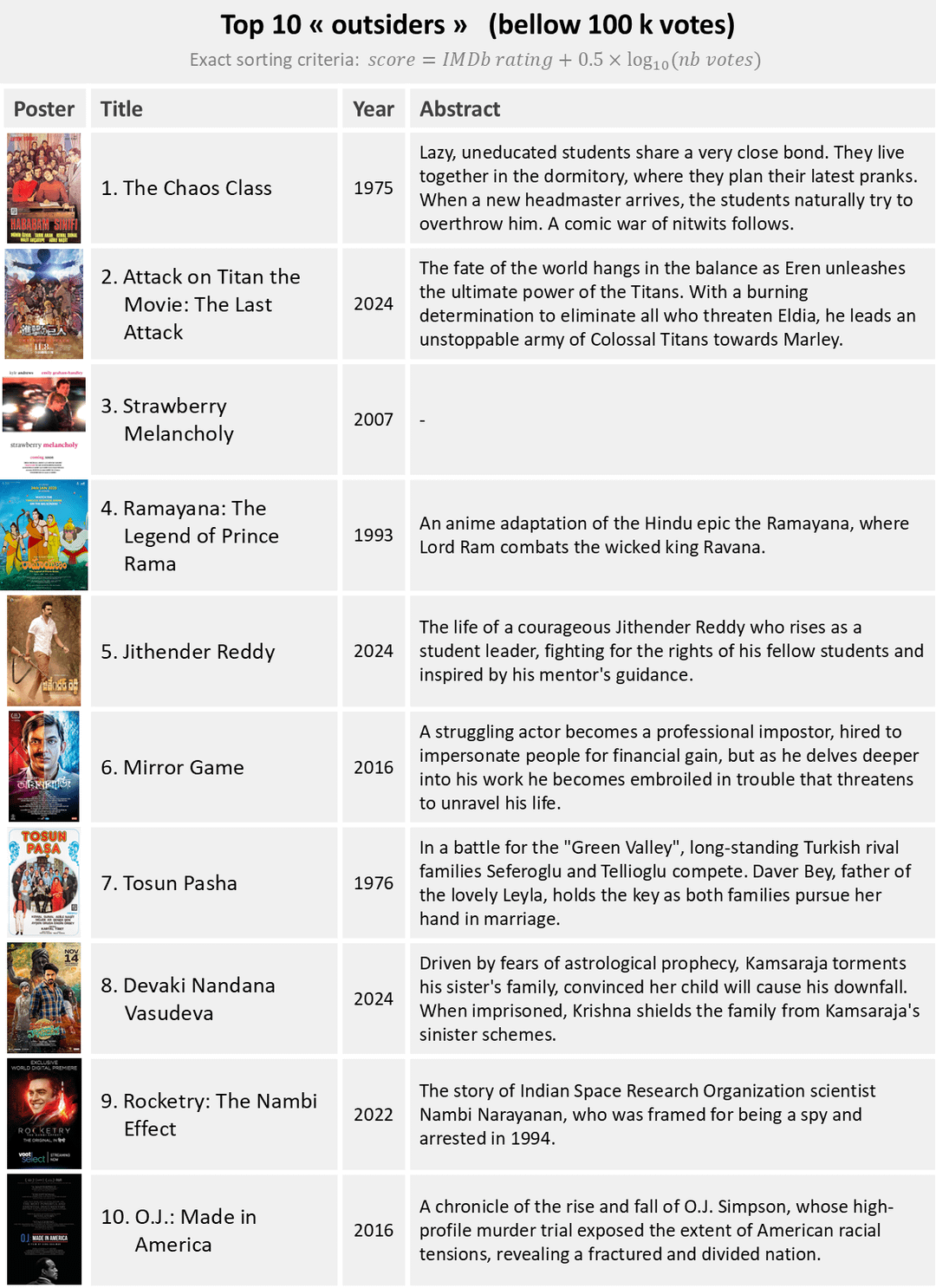 3. Fun fact: an anaptation of the Ramayana is found in both the “top 10 outsiders” and the “bottom 10 films”
