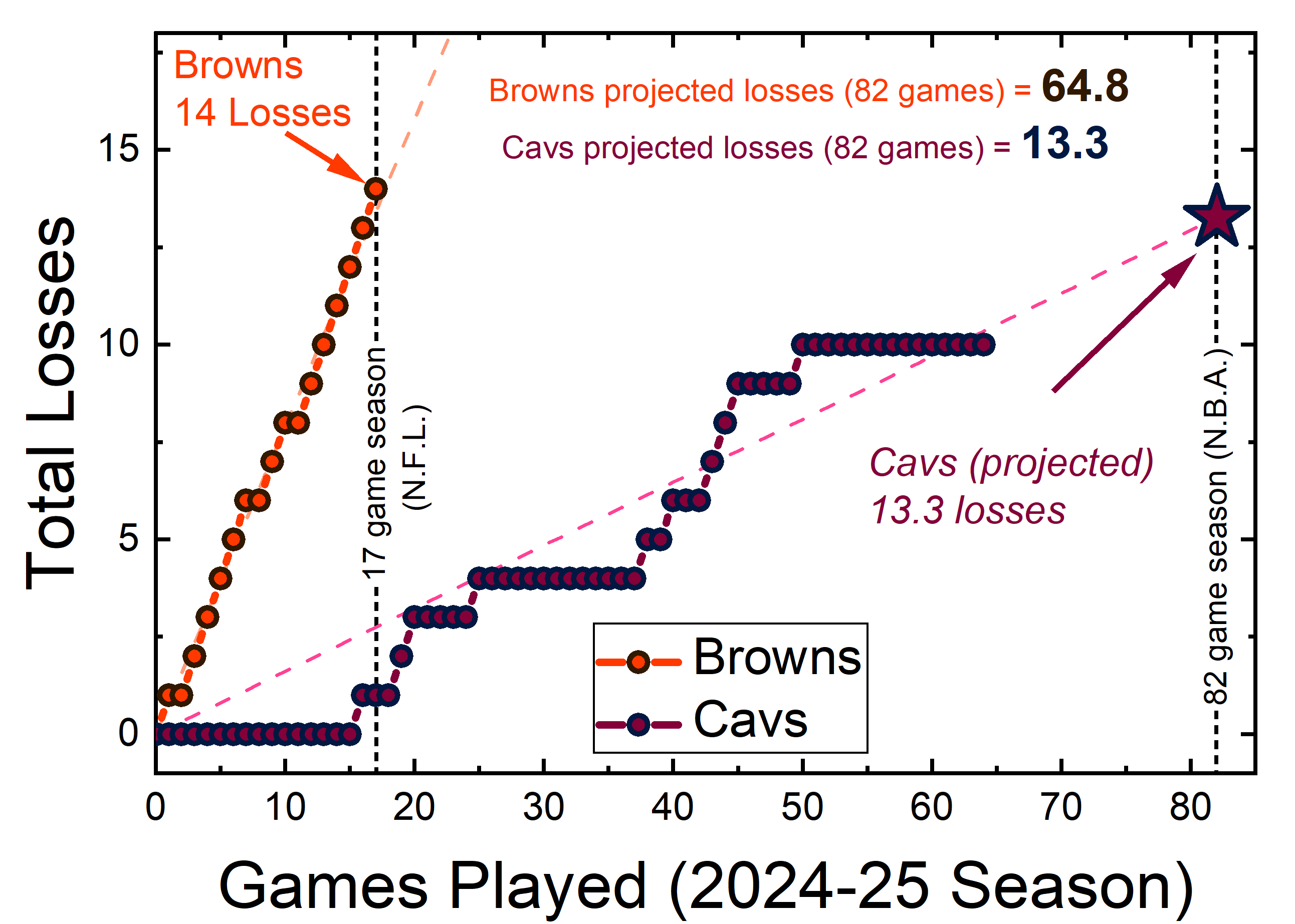 data: [browns losses](https://www.pro-football-reference.com/teams/cle/2024.htm), [cavs losses](https://www.nba.com/team/1610612739/schedule) tools: OriginLab
