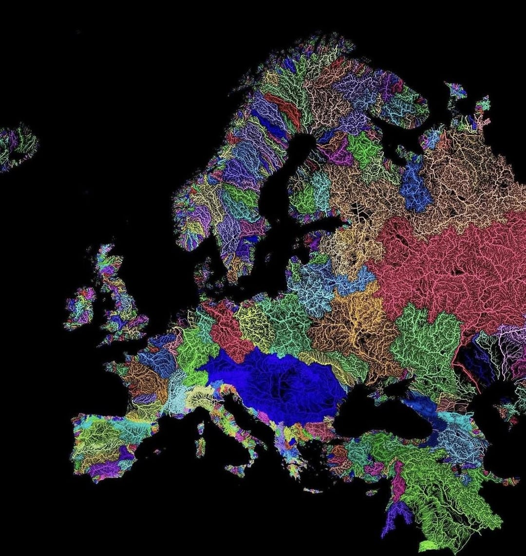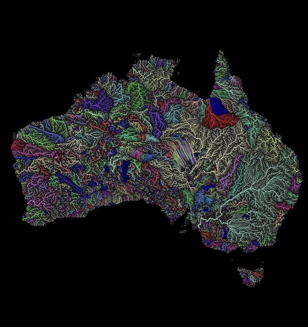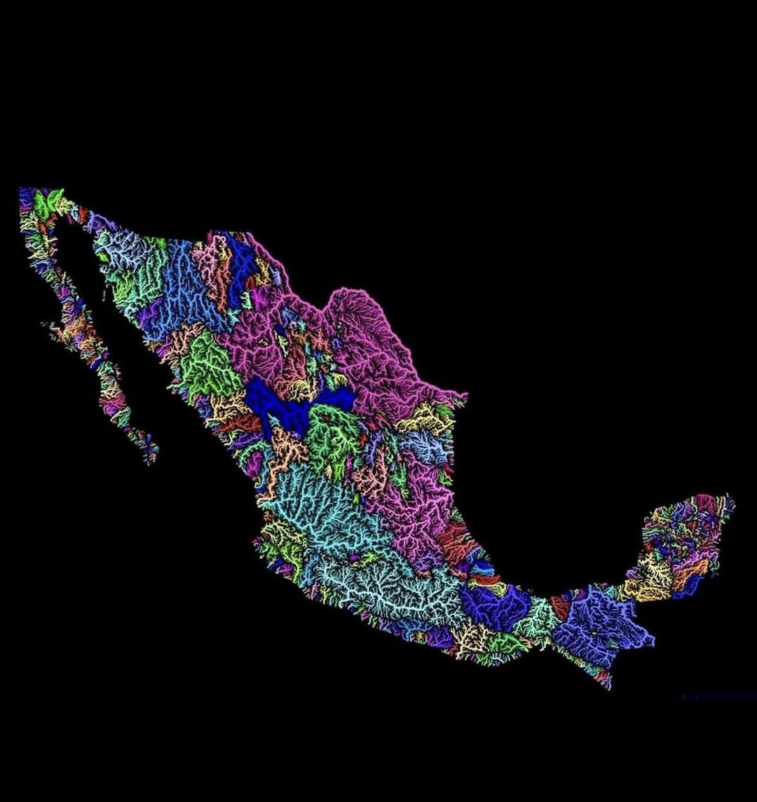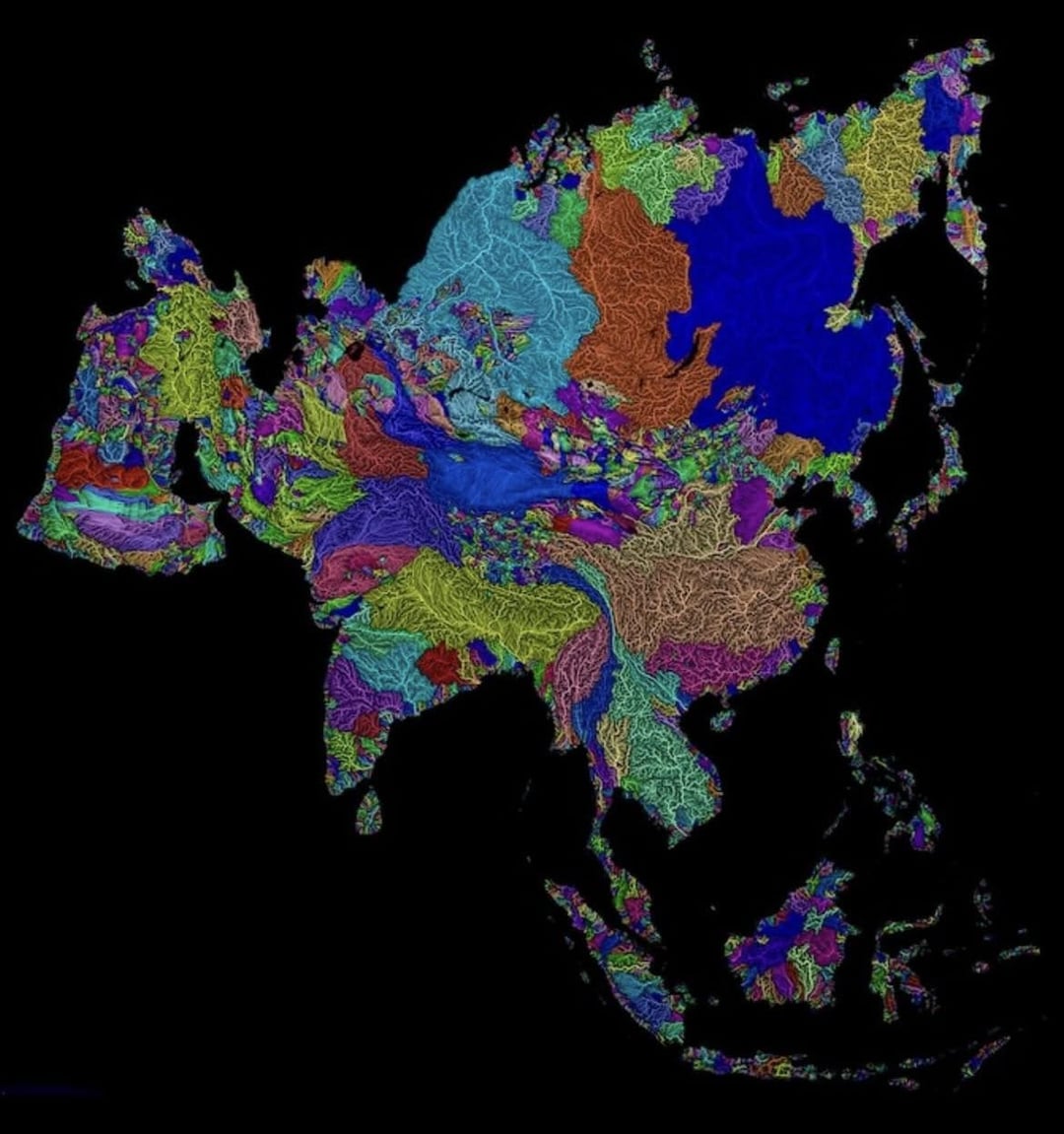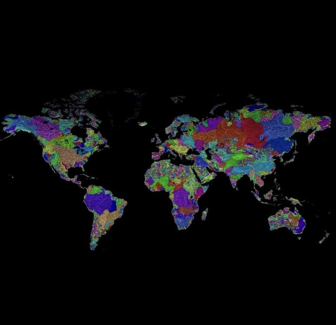 Like if you take any river and start at one end and follow the watershed (color boundaries) you will end up at the other side of the river, without crossing ANY river or stream.