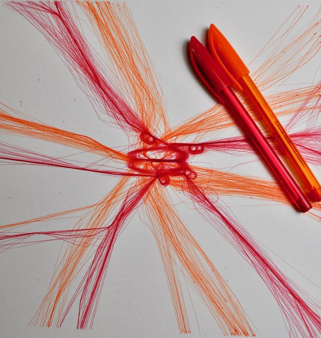 A little context here, I’m taking flight position data and then using that with a pen plotter to draw out multiple flight paths going into the London Heathrow Airport. The scale of this drawing is about 100km by 100km. super interesting to see the flight holding patterns come to life.