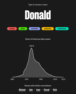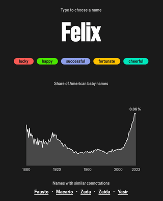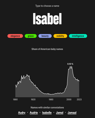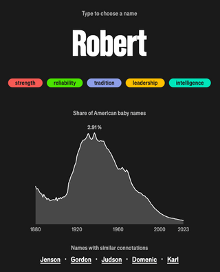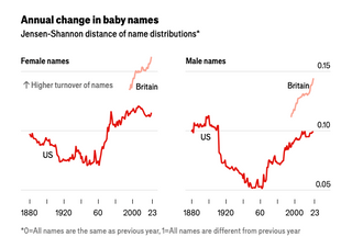 You can look up your own name at the link, which is paywalled but free if you register (sorry if yours-like mine-is not popular enough to make the dataset). [https://www.economist.com/interactive/culture/2025/03/20/what-is-in-a-name](https://www.economist.com/interactive/culture/2025/03/20/what-is-in-a-name)