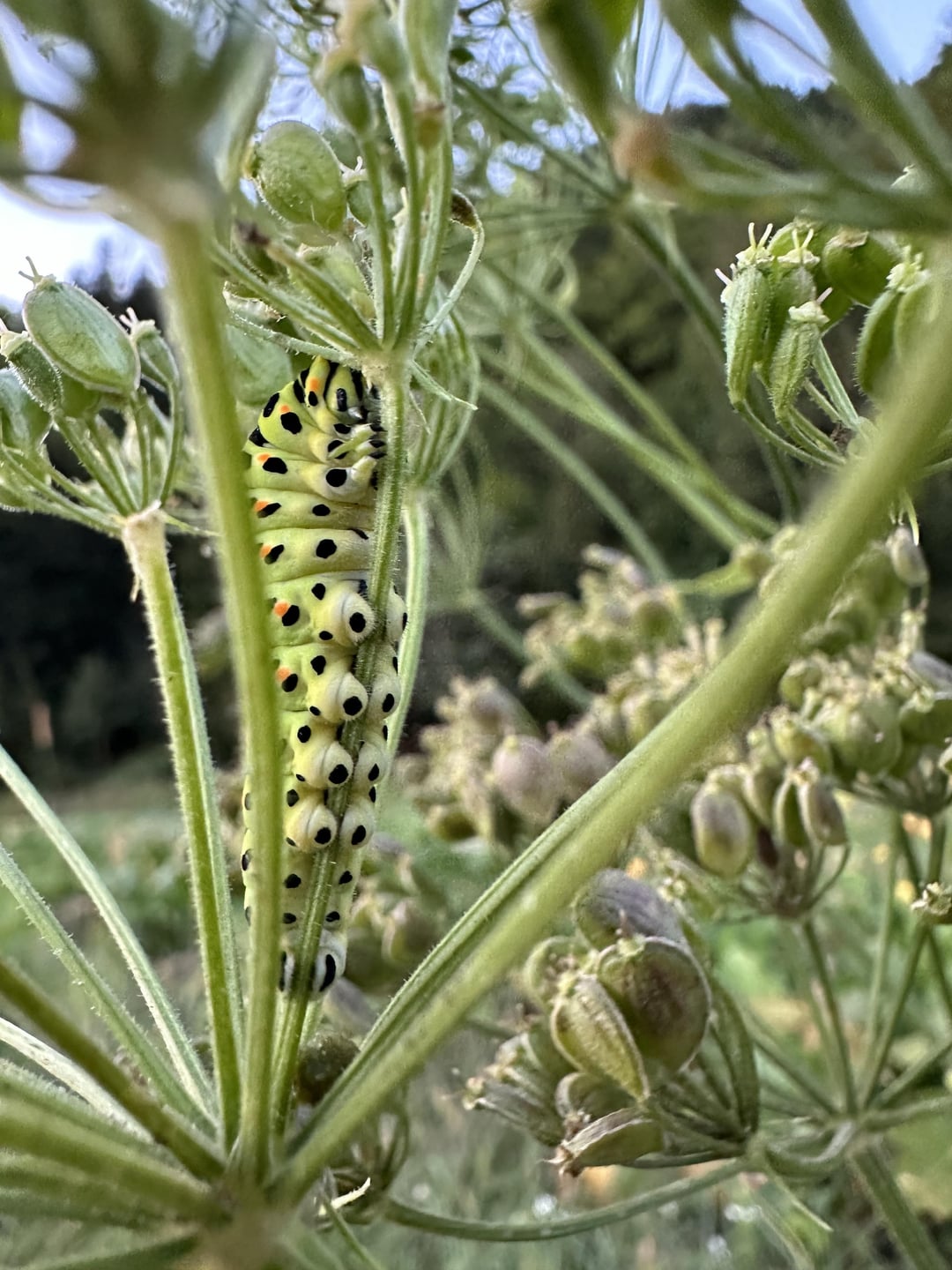 3. Wunderschön! Definitiv eine Schwalbenschwanz-Raupe 🦋 wenn du dich für Insekten interessierst, mach ich mal schamlos Werbung für die ObsIdentify-App, die ist super um vor allem Insekten zu identifizieren, aber kann auch andere Tiere, Pflanzen und Pilze erkennen.