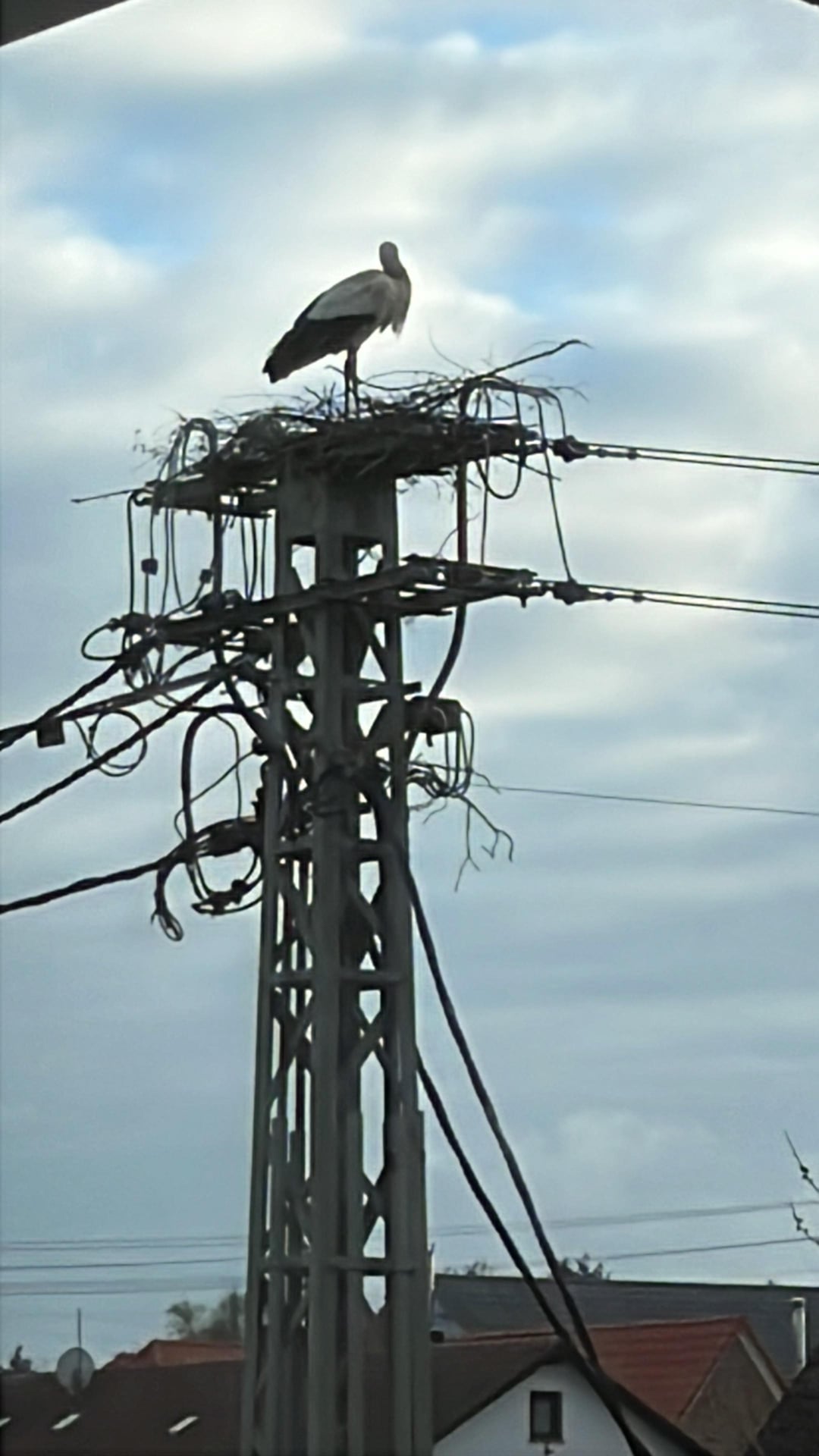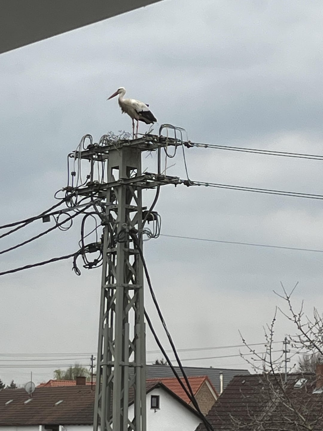 Ruf mal die Feuerwehr an wenn der Strommast noch an ist hast du eventuell ein gegrillten Storch oder ein brennendes Nest.
