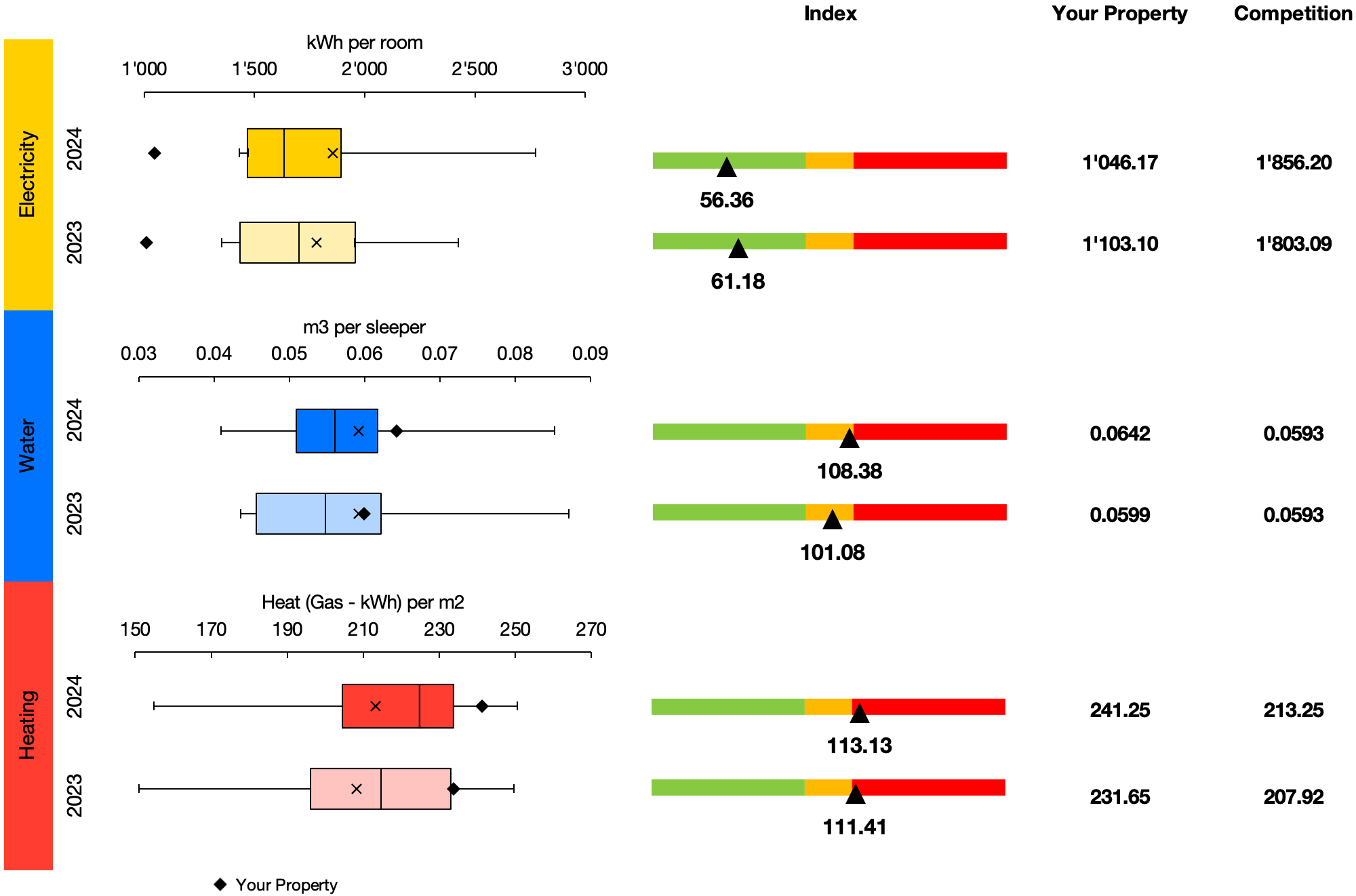 I’m working on a benchmarking report for a project that helps compare utility usage (like energy or water) against a group of similar competitors. The goal is to make inefficiencies easy to spot at a glance.