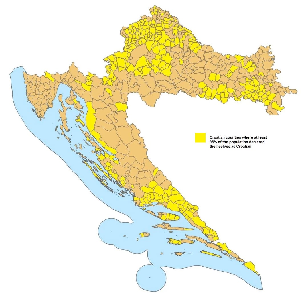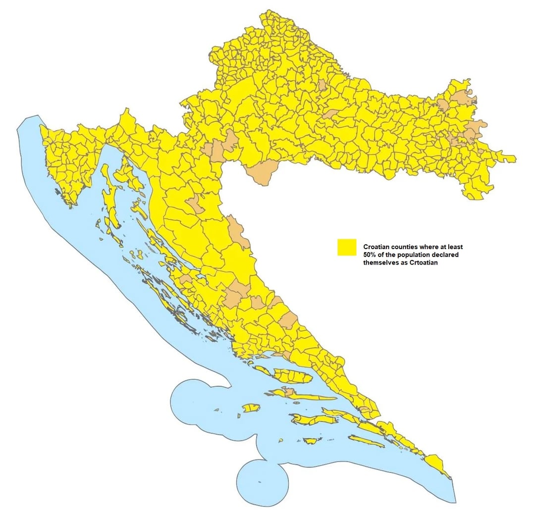 I made a few maps about the nationalities and religions in Croatia, according to the population census from 2021. Source: dzs.gov.hr