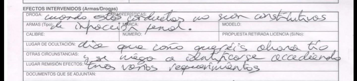 Cosas por supuesto pues se han inventado, probablemente lo hicieron porque no encontraron drogas en mi vehículo y como desde el principio hicieron el abordajd de malas maneras tuvieron graves faltas de decoro y abuso de la autoridad incluso amenazas, pues seguramente se vieron en la necesidad de inventar.