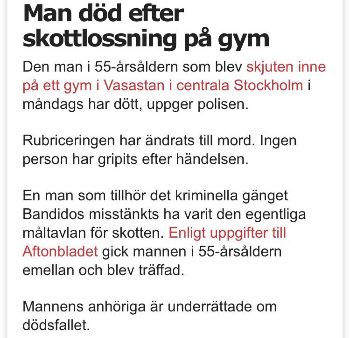 Han blev skjuten i huvudet mitt på ljusa dagen i ett “fint” område i ~~Sverige~~ menar Stockholm för att försöka skydda en krogvakt(?) som säkert jobbar någonstans där kanske någon av våra karriärpolitiker besöker