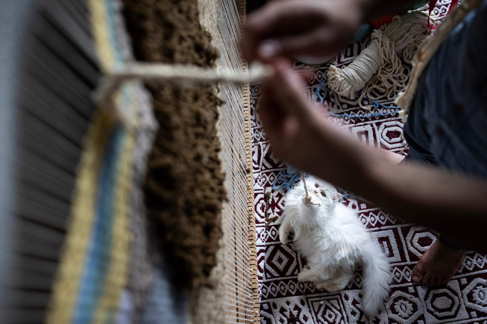 He continued selling rugs, and it was in that shop where he met his now wife, Alyssa Young. A weaver herself, Young impressed Koseyaem with her knowledge about weaving. The couple had a child, Mila Rose, in Dubai, and started a business both selling rugs and teaching weaving classes. But the pandemic affected their success, ultimately leading them to uproot again and move to Young’s hometown, Houston, in 2021.